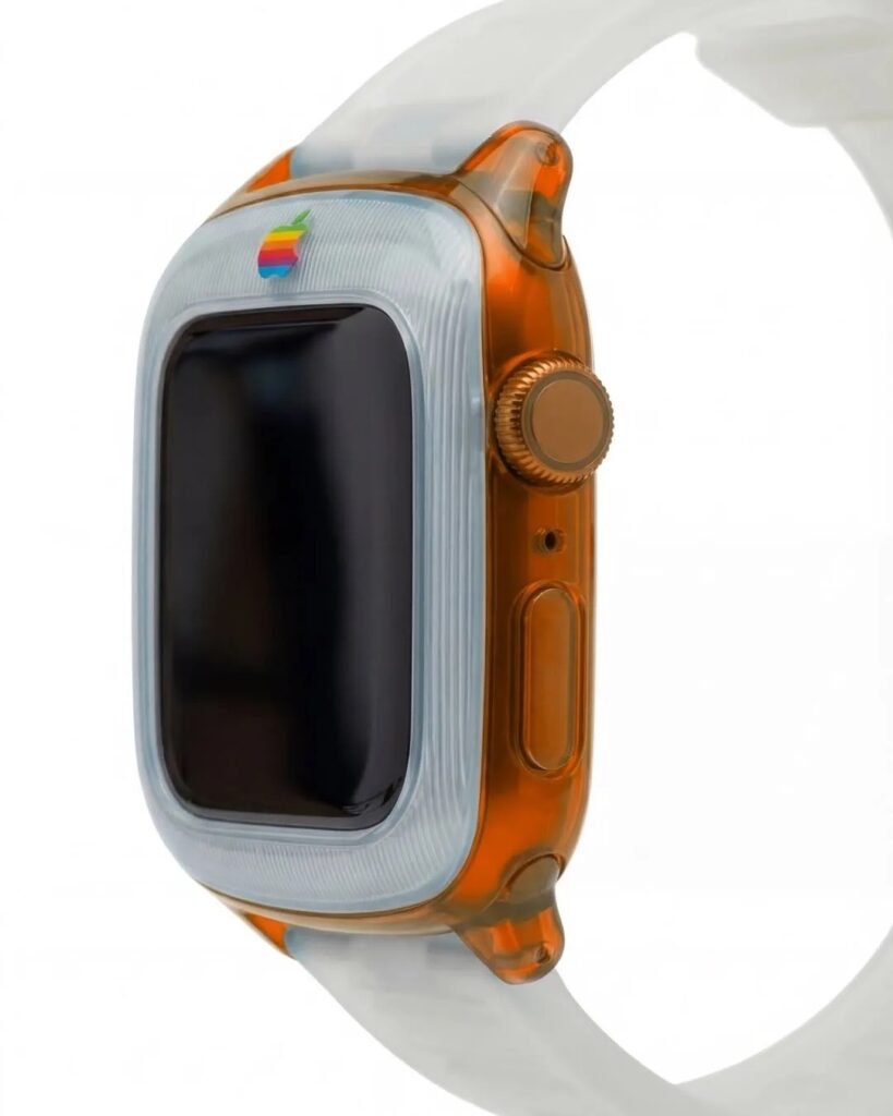 Each version is paired with matching transparent straps, extending the retro look beyond the watch body itself. The see through bands reinforce the idea that this is not just a color swap but a full commitment to a specific design era. Even though the overall silhouette still matches today’s Apple Watch, the materials make it feel like an entirely different product.