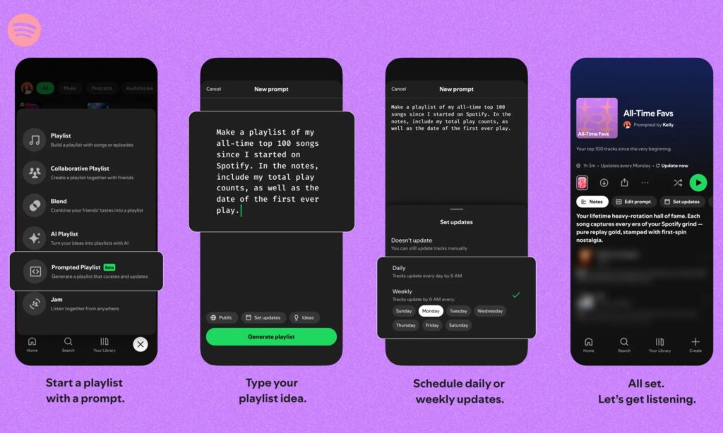 Spotify is expanding access to its latest AI-driven playlist tool, giving users in the United States and Canada a new way to build playlists using simple text prompts. The feature, called Prompted Playlist, lets listeners describe a mood, activity, or musical idea and instantly receive a curated playlist that reflects that input.